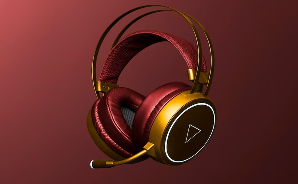 red and gold headphones digital device